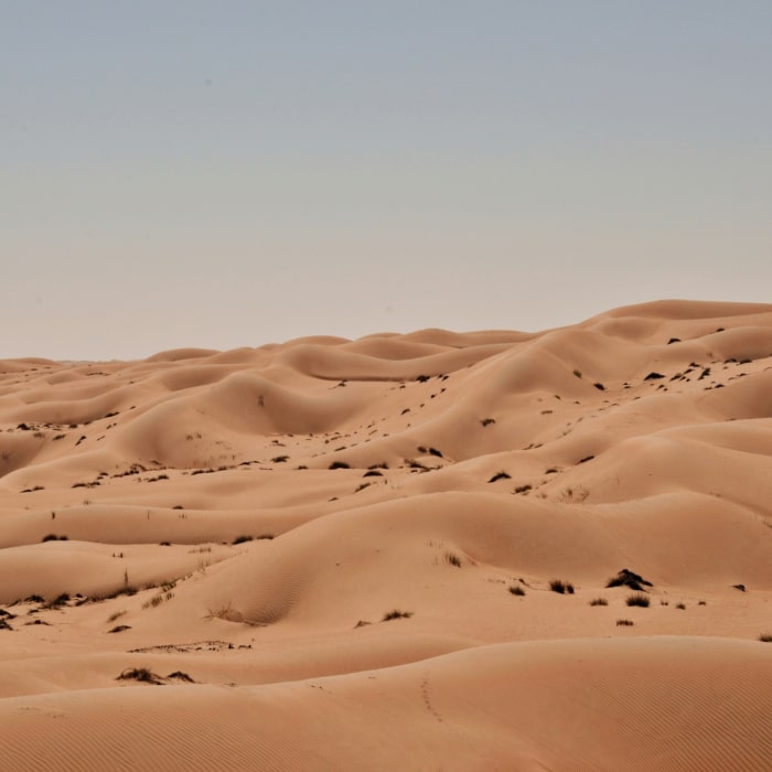 Casi el 80% del territorio de Omán es desierto y todavía habitan pequeñas comunidades de beduinos que mantienen su estilo de vida y costumbres tradicionales en lugares como el desierto de Wahiba Sands. Además, Oman se encuentra en el desierto de Rub al-Jali, uno de los desiertos más grandes del mundo y conocido por tener algunas de las dunas de arena más altas.