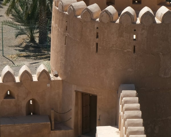 En la población vecina de Jabrin se encuentra Bahla, una ciudad histórica conocida por su cerámica artesanal y donde destaca su fortaleza que fue inscrita en el Patrimonio de la Humanidad por la Unesco en el año 1987. De entre las palmeras del oasis de Bahla sobresale este imponente edificio, que es una de las obras maestras de la arquitectura que se desarrolló en el siglo XII.