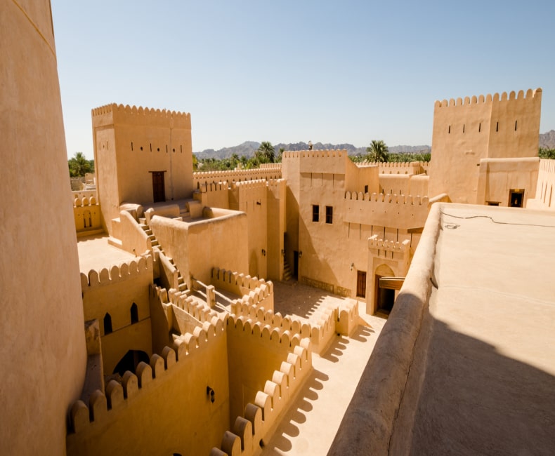 En el corazón del país se localiza Nizwa, capital de un antiguo imperio marítimo que extendió sus posesiones hasta la isla de Zanzíbar. De aquella época, el siglo XVII, data su imponente Fuerte, el más grande de la Península Arábiga. Sin duda, su espectacular torre circular, de 30 metros de altura y 36 de diámetro, es una de las imágenes más icónicas de Omán.